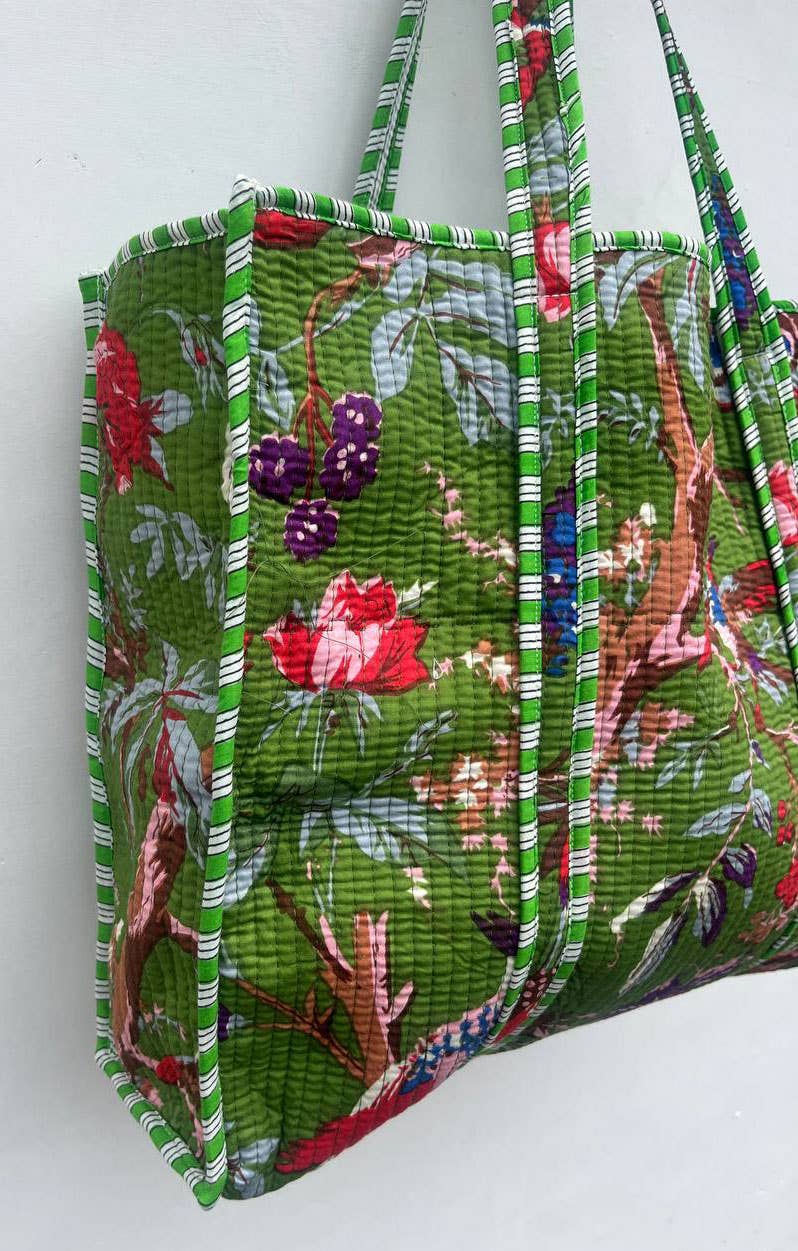 bhavnas boutique - Bird Printed Cotton Quilted Shopping Bag Grocery Women Bags