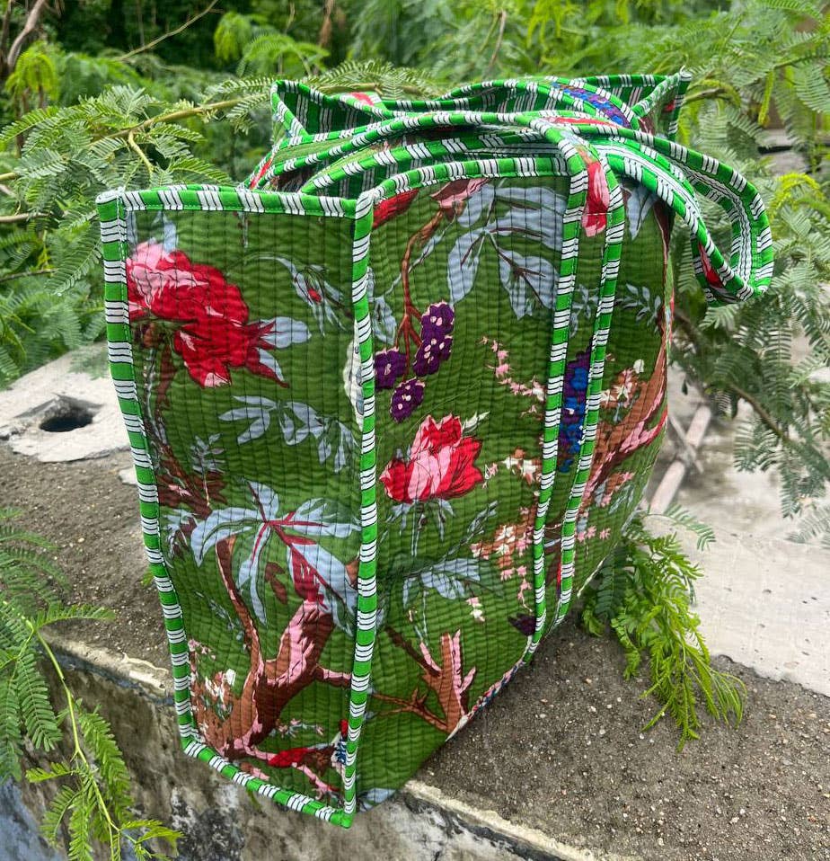 Cotton Quilted Jhola Bag made by Indian Artisans, this cotton quilted shopping bag is totally unique and multi purpose. Use this for your grocery or as a travel bag. Perfect to suit all.