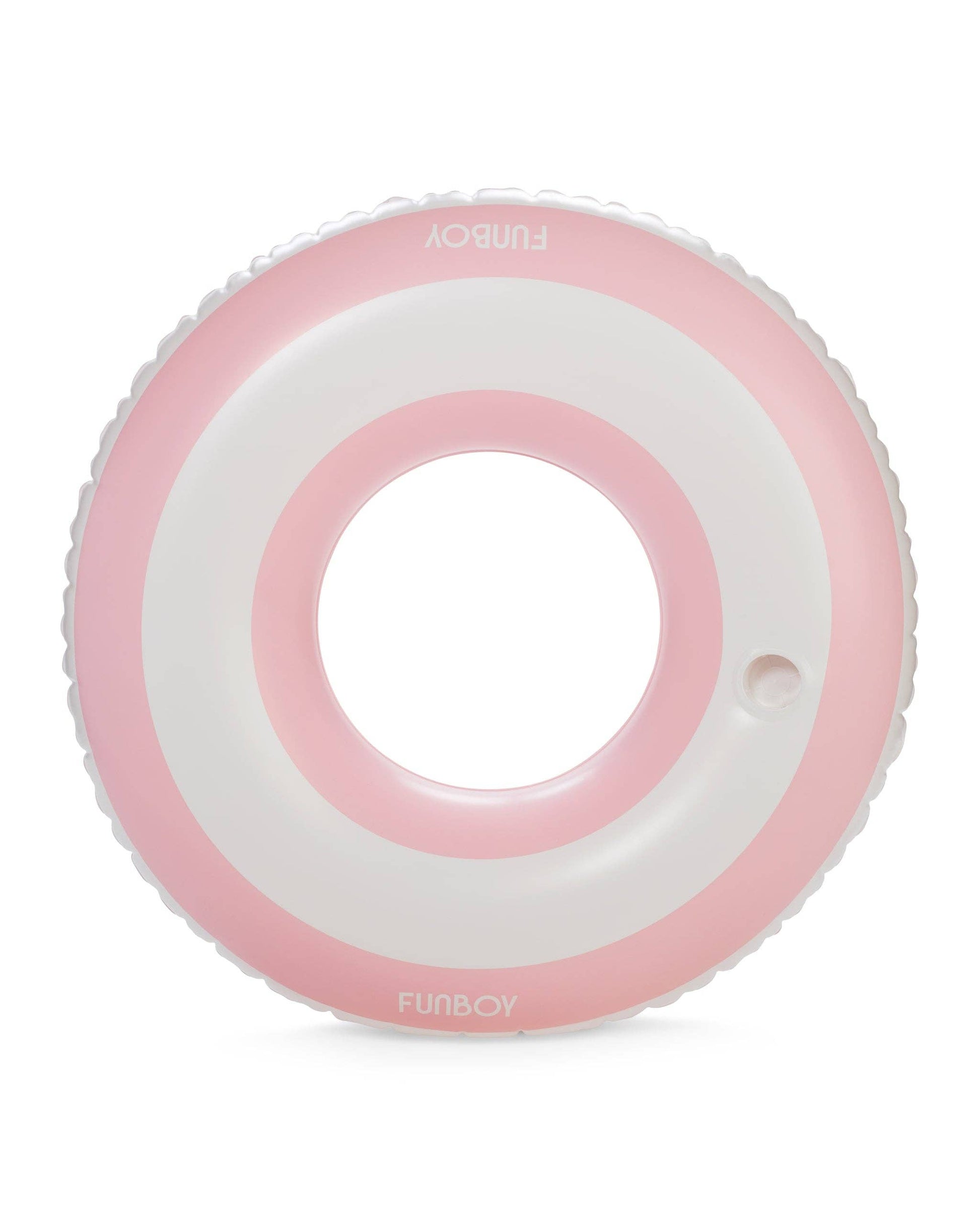Simple, classic, pink & white striped tube pool float for the best summer yet! 50" oversized design large enough for adults. Includes an integrated cup holder to keep your beverage firmly in-place.