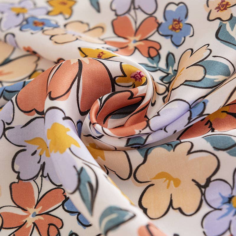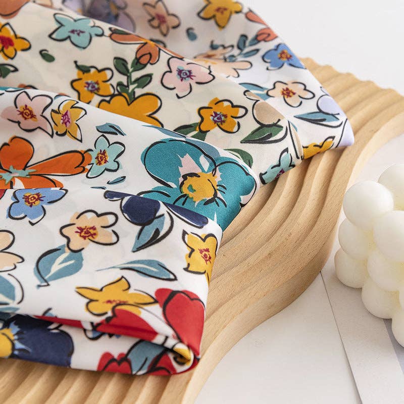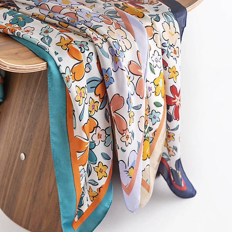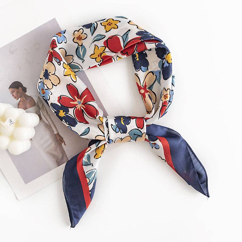 Delightful Floral Design: Adorned with a charming array of tiny flowers, this square scarf adds a playful and sweet touch to any outfit, perfect for those who love a touch of nature in their accessories.